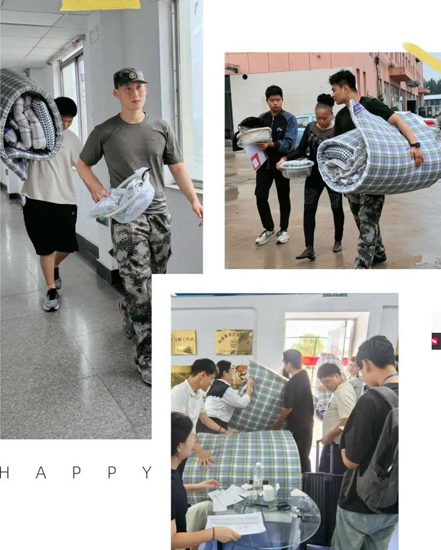 领用物资 随“寓”而安,领取公寓用品啦!负责接待的老师和教官,搬运行李、答疑解惑。