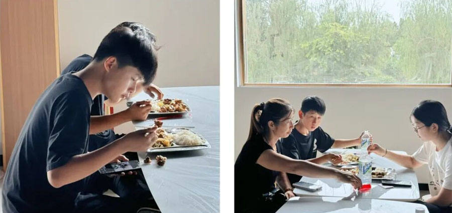 收拾完毕 美餐一顿,收拾完宿舍,肚子好饿呀,和新伙伴一起共享美味的午餐。
